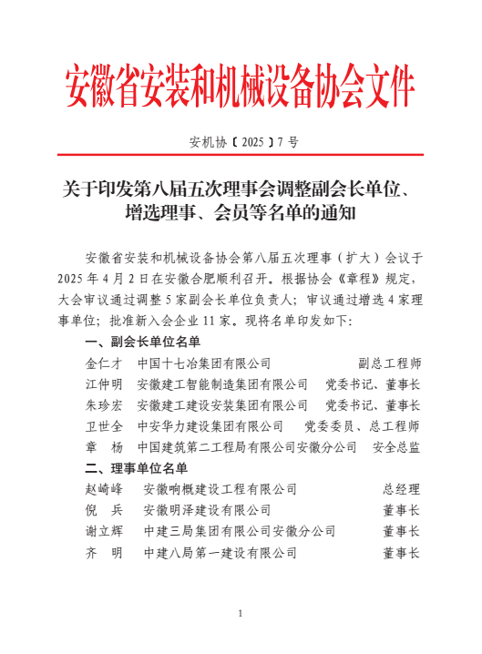 關于印發(fā)第八屆五次理事會調整副會長單位、增選理事、會員等名單的通知