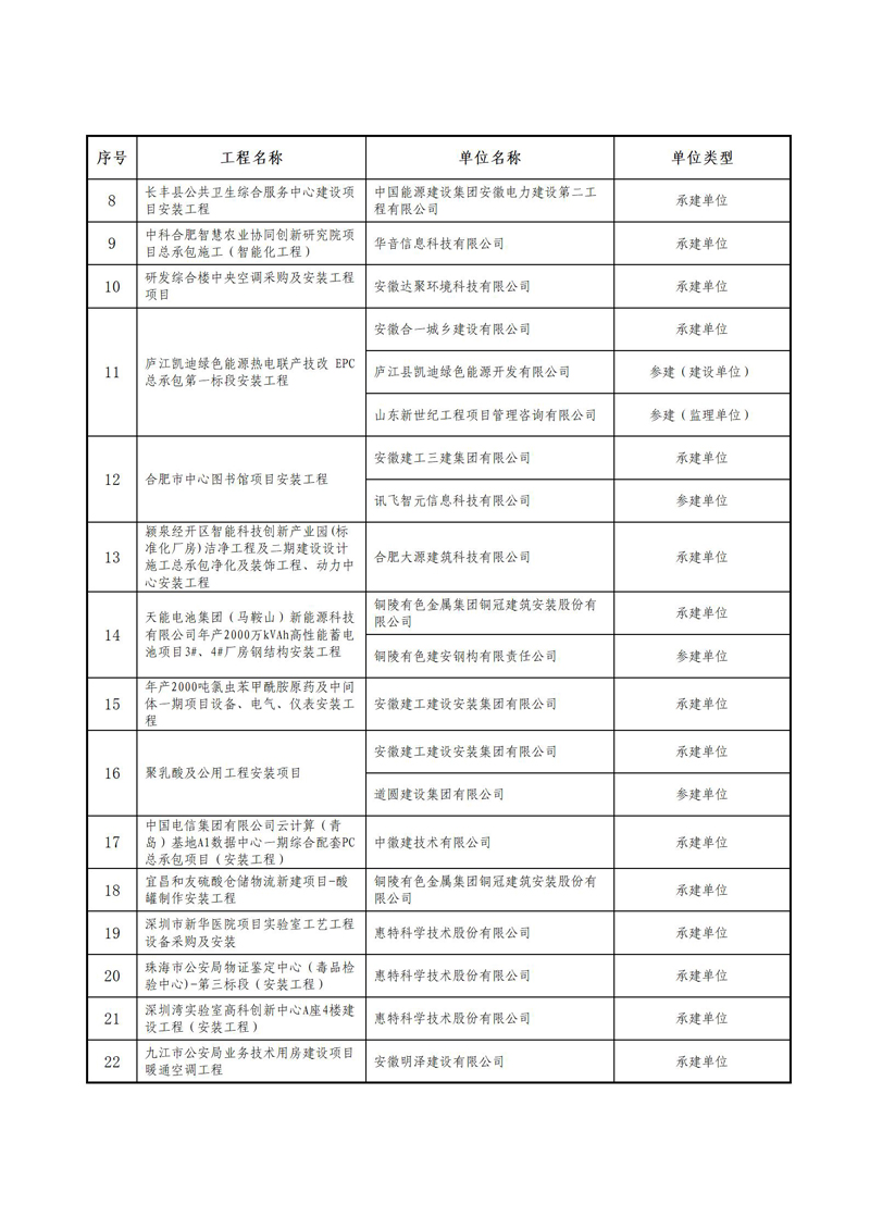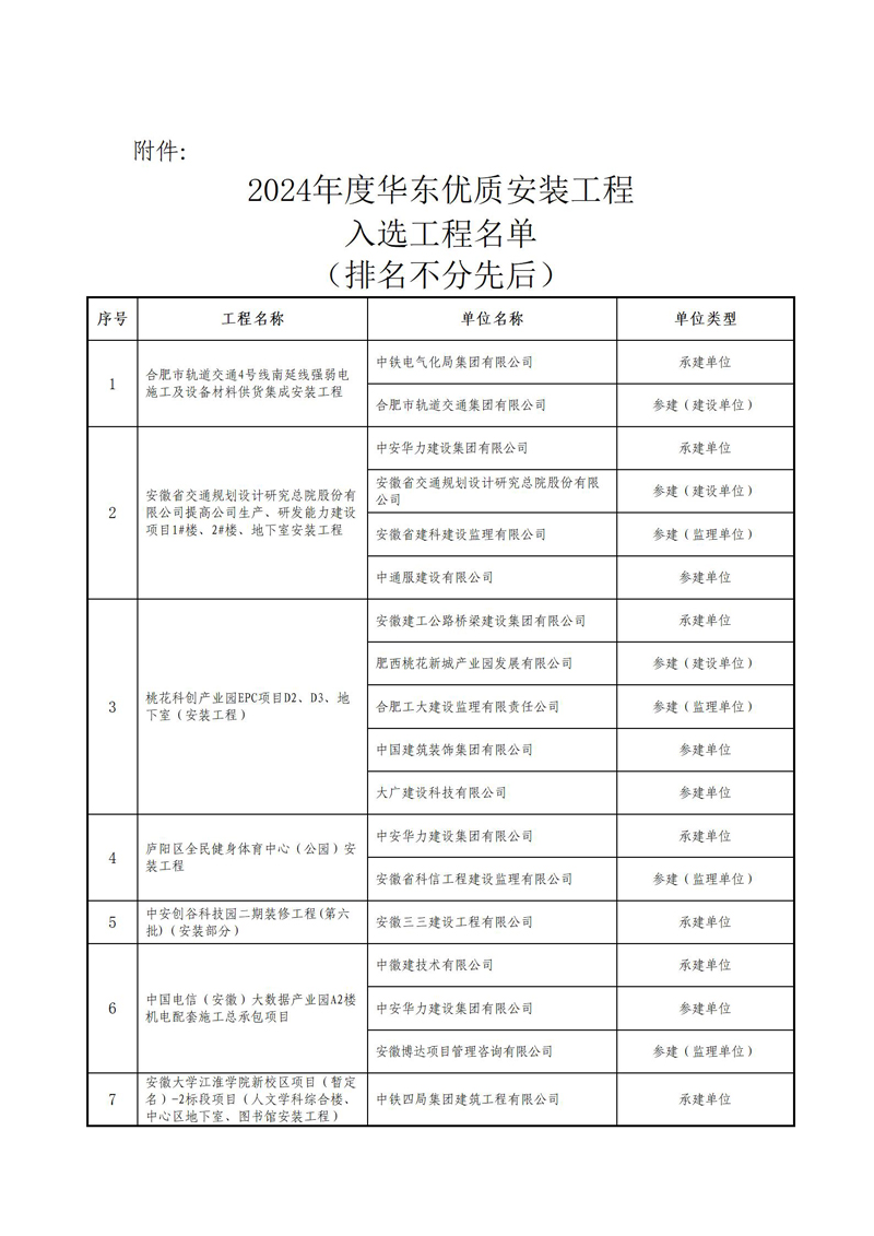 關(guān)于2024年度“華東優(yōu)質(zhì)安裝工程評(píng)價(jià)活動(dòng)”安徽推選工程名單的公示
