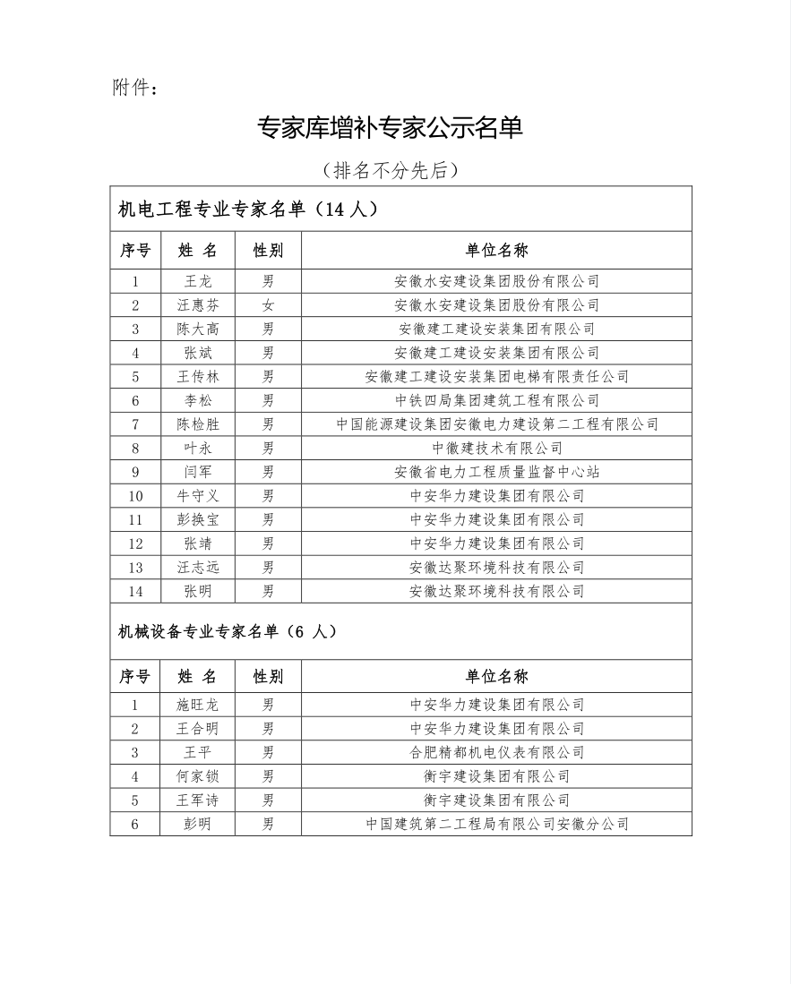 關(guān)于公布安徽省安裝和機(jī)械設(shè)備協(xié)會(huì)增補(bǔ)專家?guī)鞂<颐麊蔚耐ㄖ?/a>